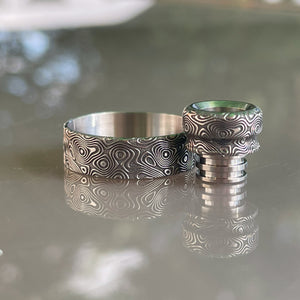 Il se compose d'une superbe Beauty Ring gravée du design New Damascus. La gravure étonnamment bien équilibrée, est régulière et profonde.