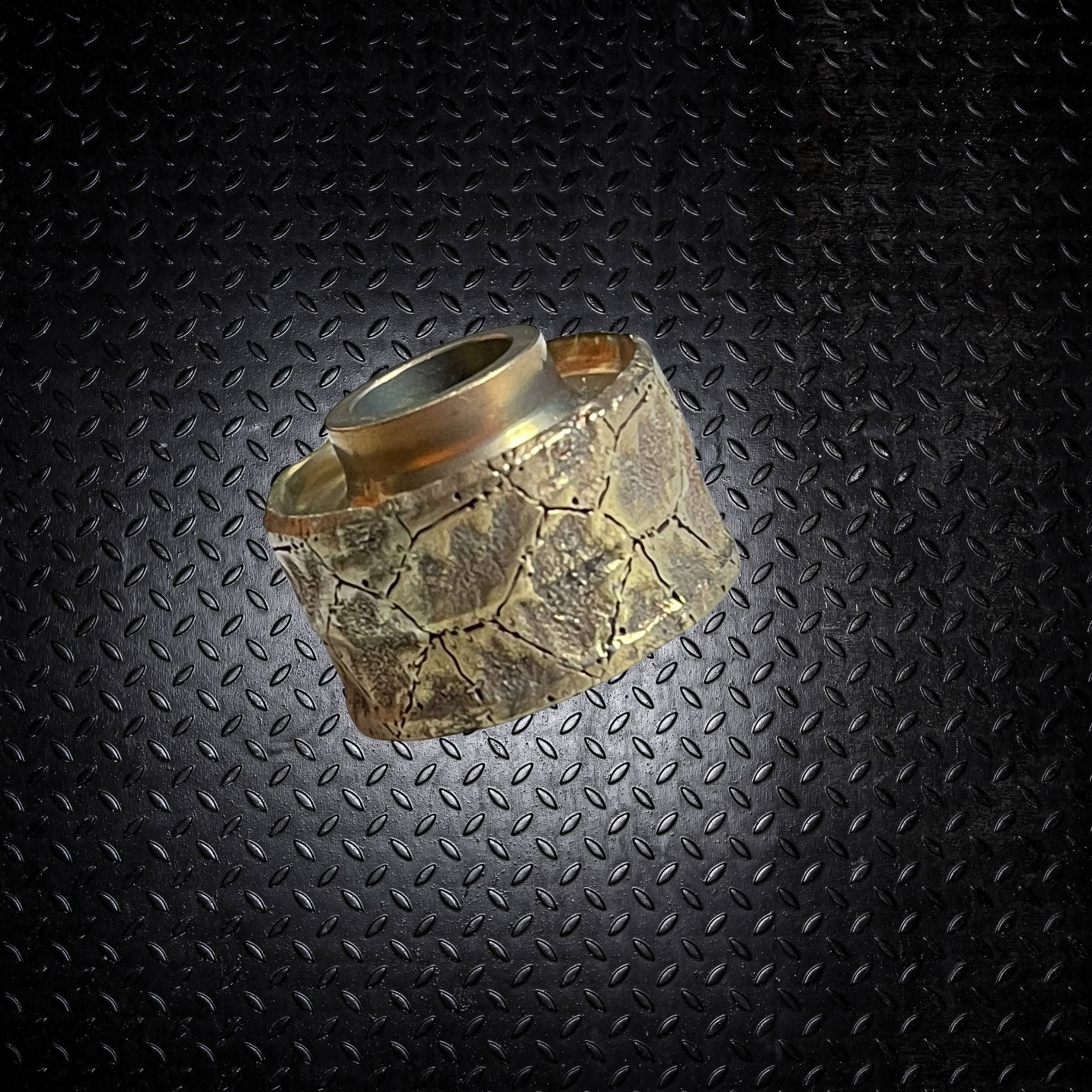 Titanium cap Antiquity V1 – Dune, engraved in France. A mineral relief inspired by desert sands, giving your setup a raw yet elegant texture.